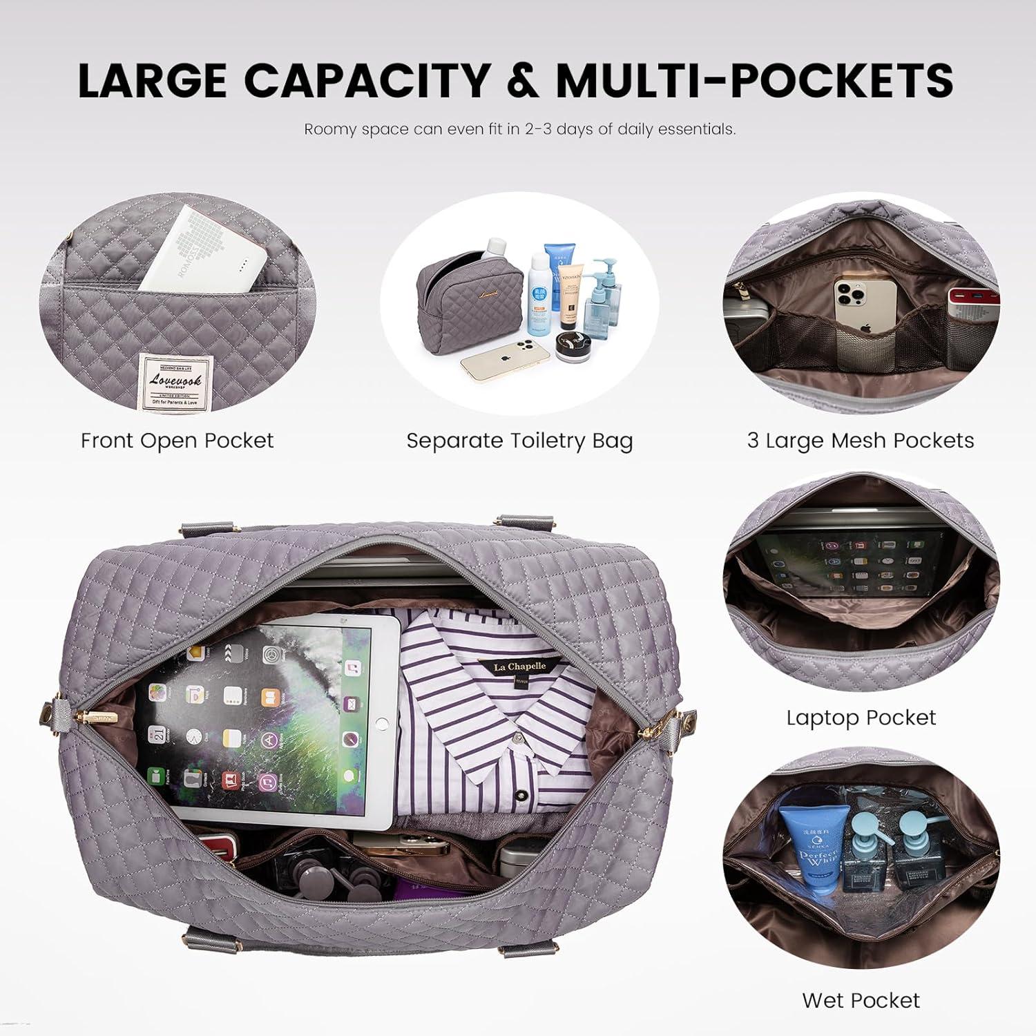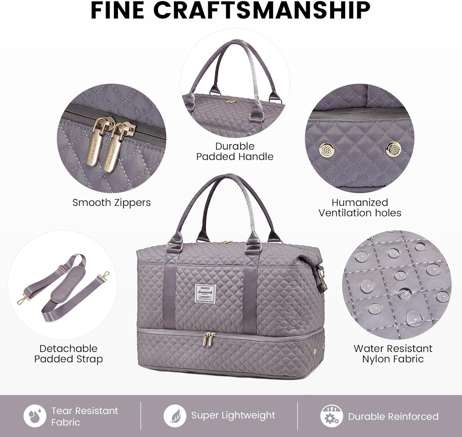 LOVEVOOK Travel Duffle Bag,Weekender Bags for Women with Shoe Compartment,Carry on Overnight Bag with Toiletry Bag,Gym Duffel Bag with Wet Pocket, Hospital Bags for Labor and Delivery(Purple Grey-b)