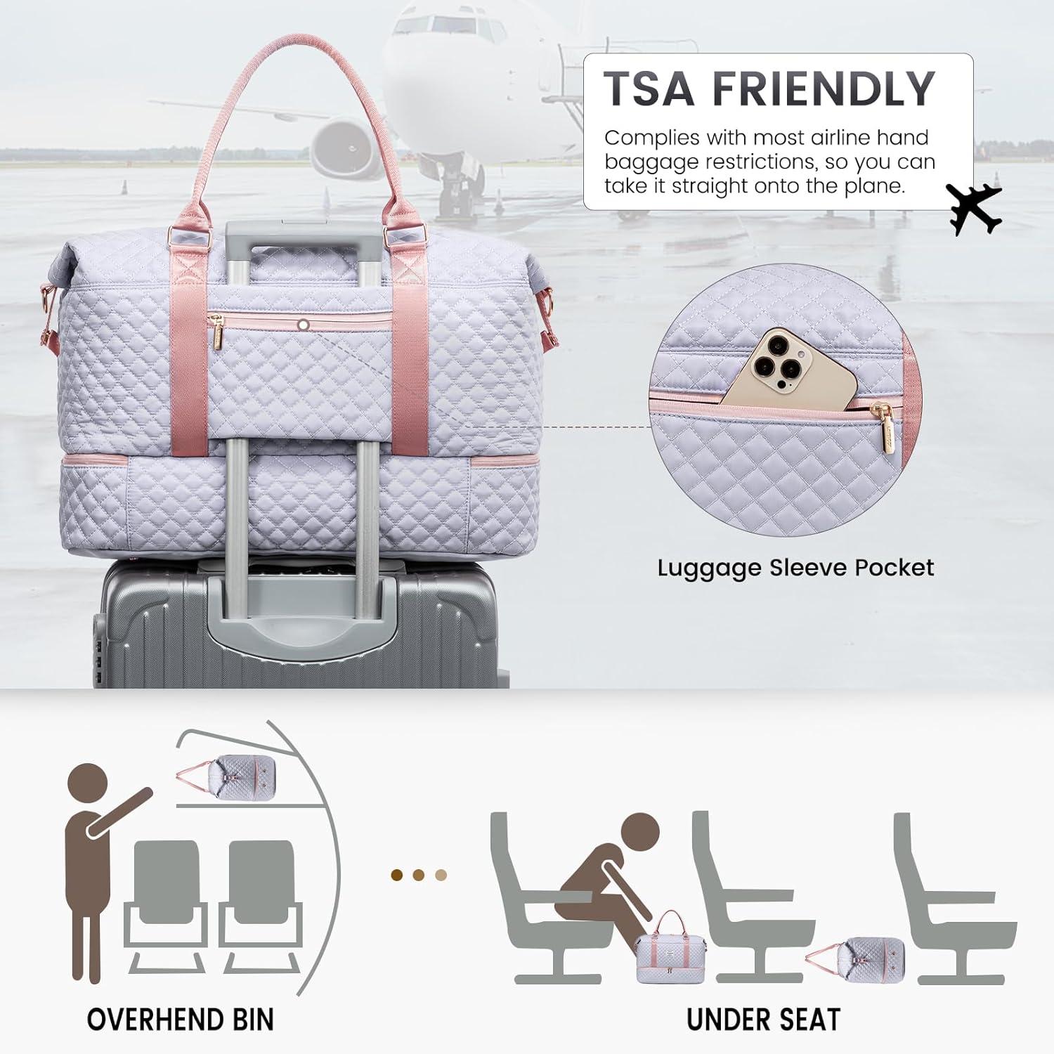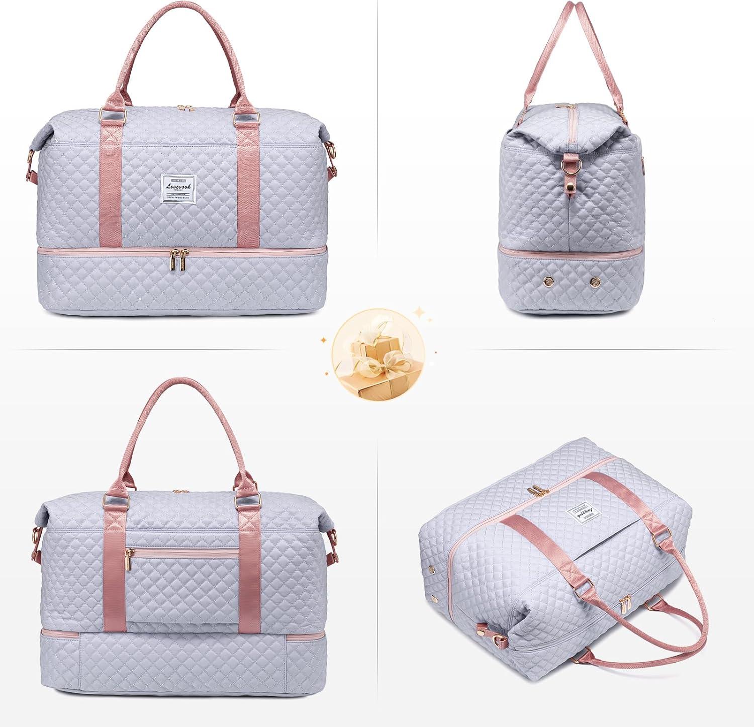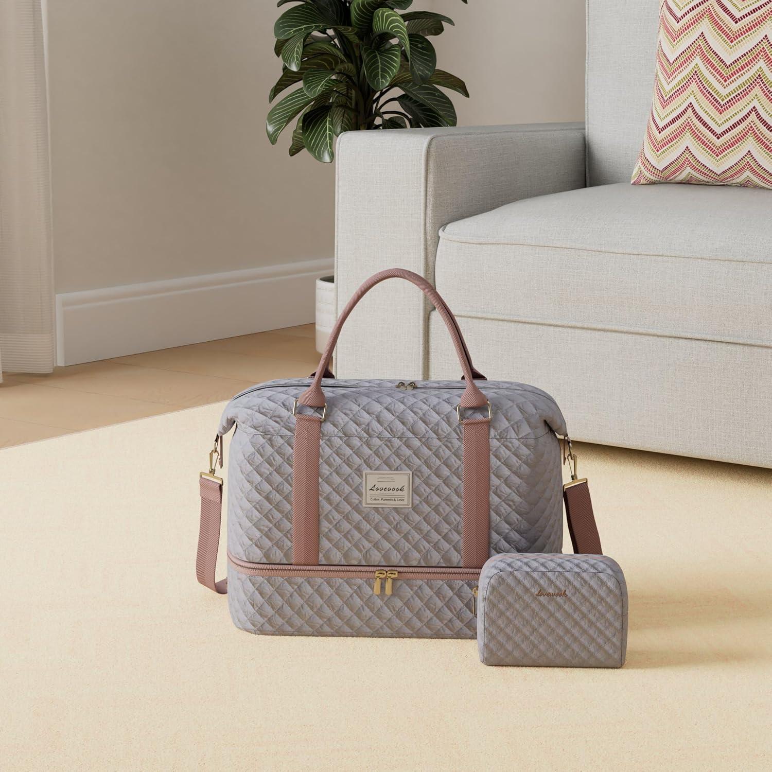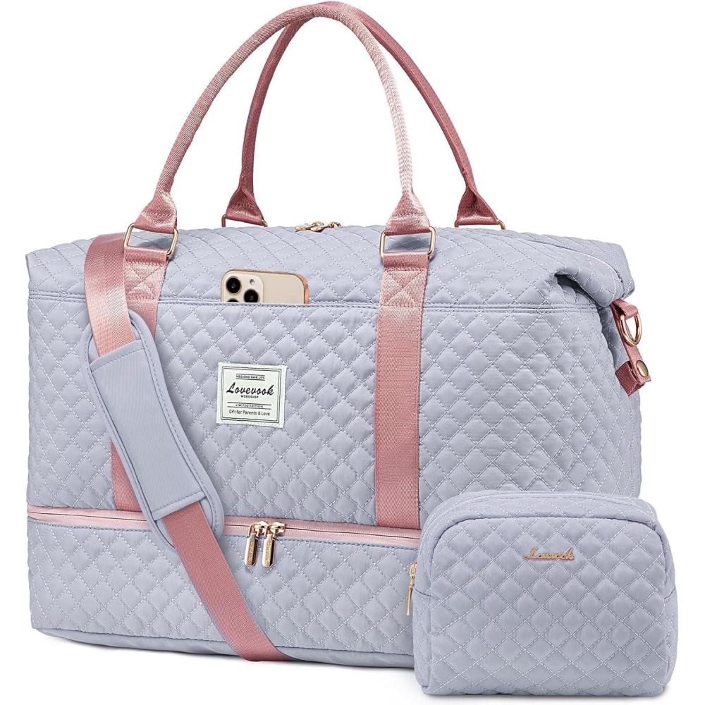 LOVEVOOK Travel Duffle Bag,Weekender Bags for Women with Shoe Compartment,Carry on Overnight Bag with Toiletry Bag,Gym Duffel Bag with Wet Pocket, Hospital Bags for Labor and Delivery(Silver Grey)