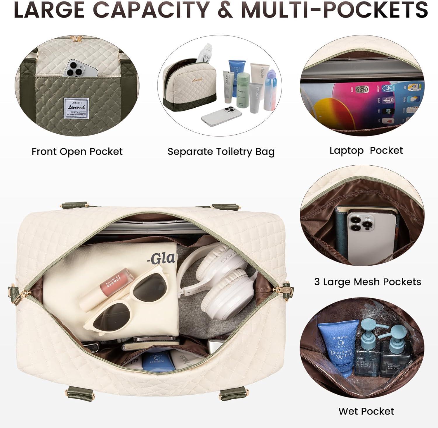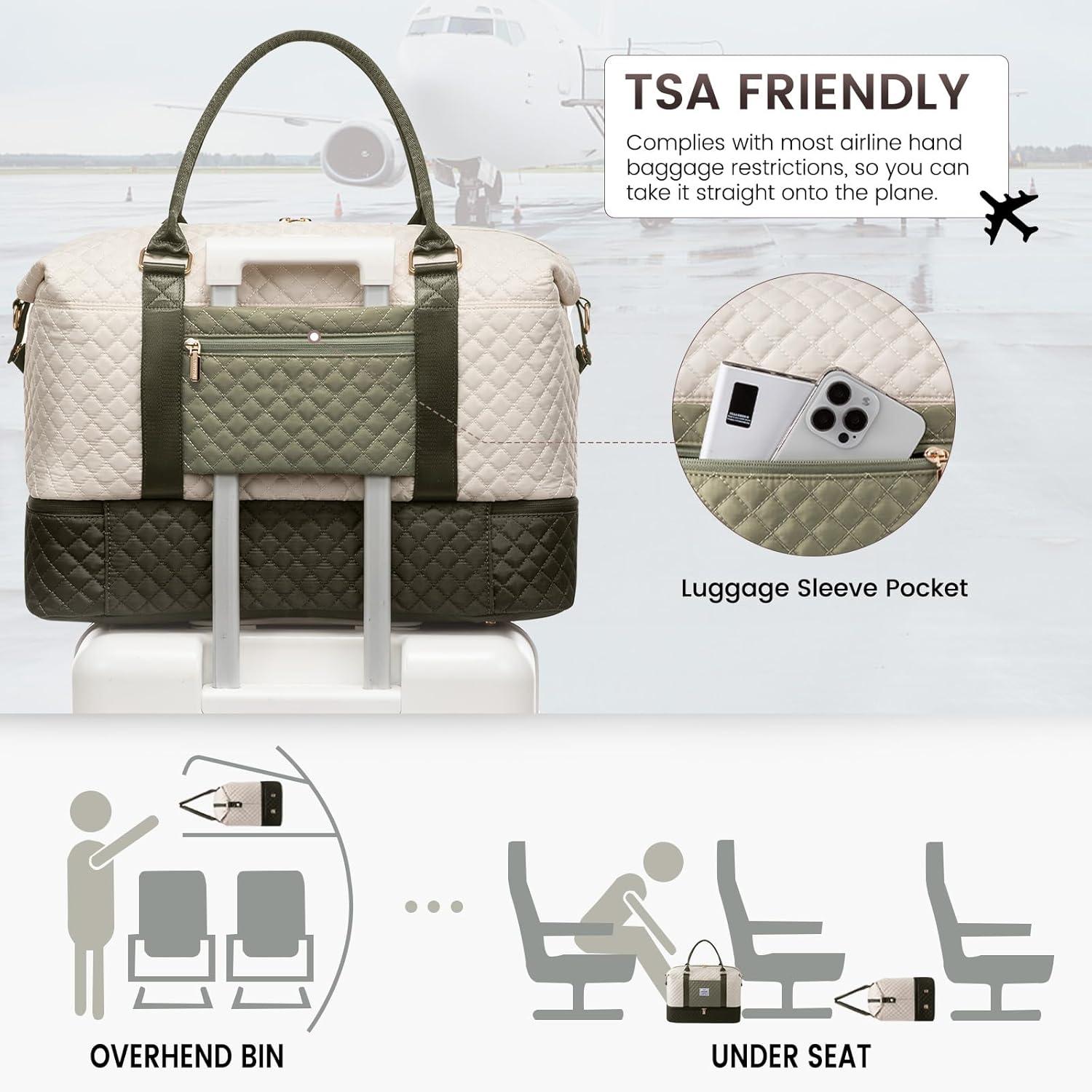 LOVEVOOK Travel Duffle Bag,Weekender Bags for Women with Shoe Compartment,Carry on Overnight Bag with Toiletry Bag,Gym Duffel Bag with Wet Pocket, Hospital Bags for Labor and Delivery(White&olive green-a)