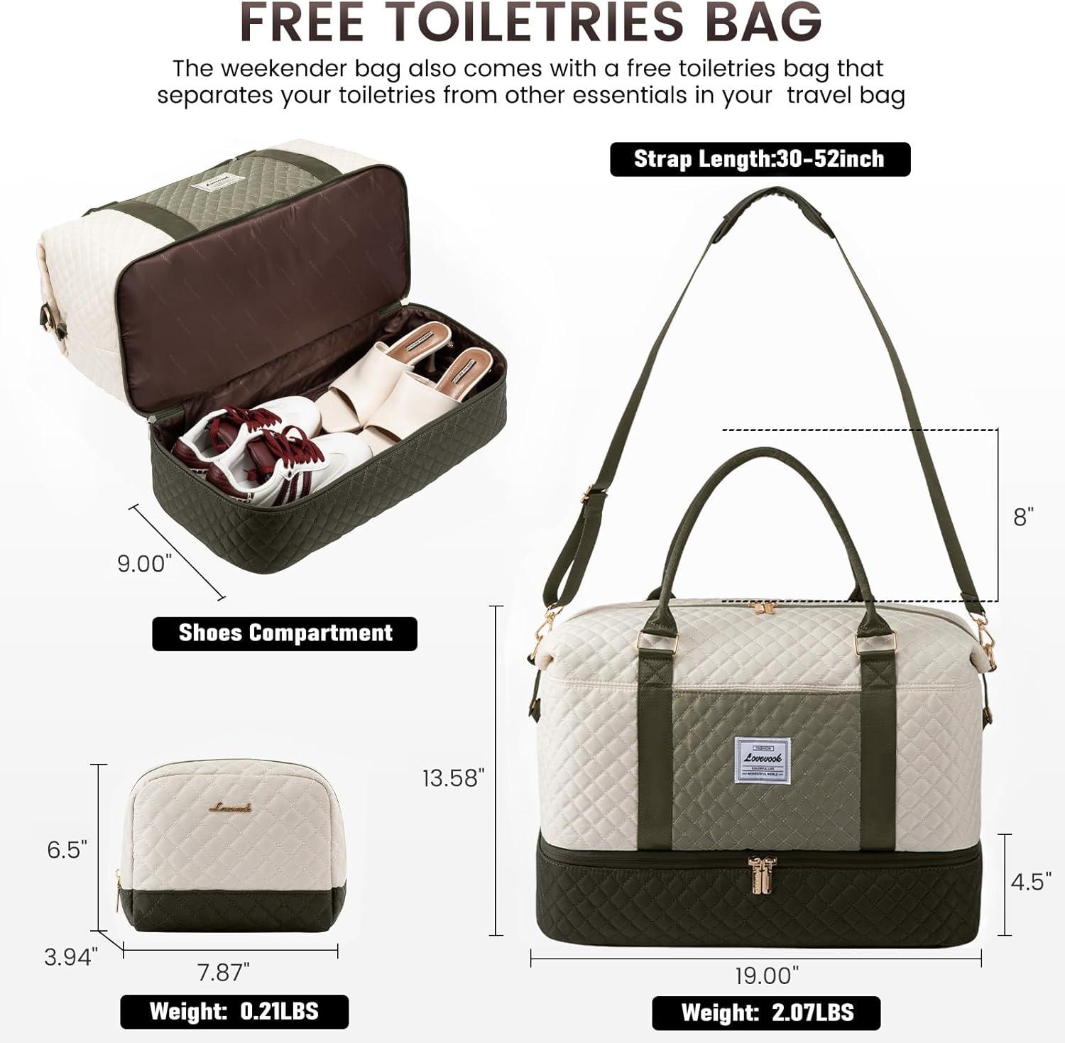 imageLOVEVOOK Travel Duffle BagWeekender Bags for Women with Shoe CompartmentCarry on Overnight Bag with Toiletry BagGym Duffel Bag with Wet Pocket Hospital Bags for Labor and DeliveryWhiteolive greena